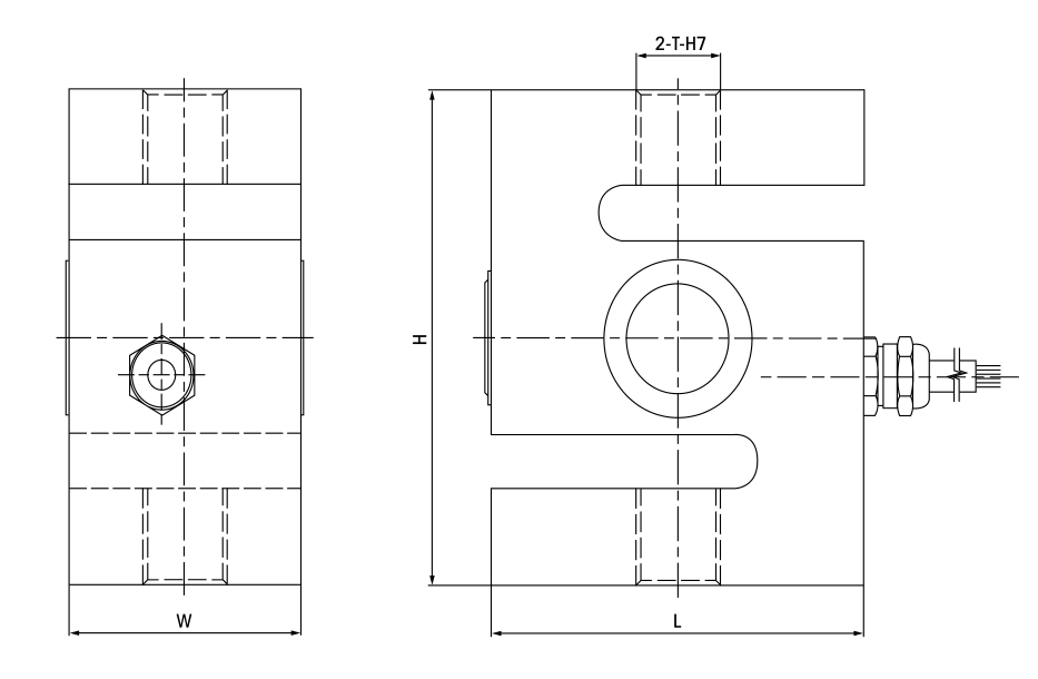 量程(kN) 量程(kg) L H W T 2,3 200,300 mm 62 80 30 M10x1 5 500 mm 62 80 30 M12x1 10 1000 mm 70 90 30 M12x1 20 2000 mm 70 90 45 M16x1.5 30 3000 mm 80 100 50 M18x1.5 50 5000 mm 92 130 58 M20x2 |
