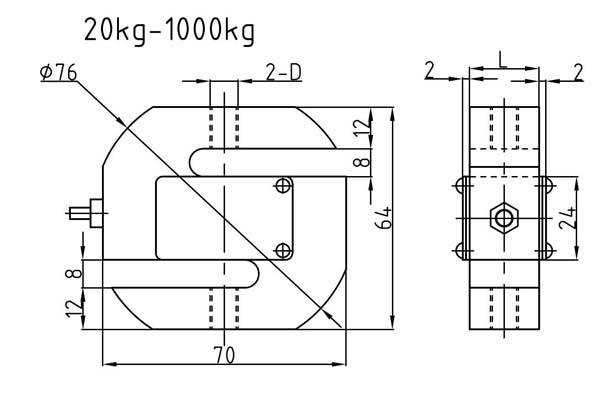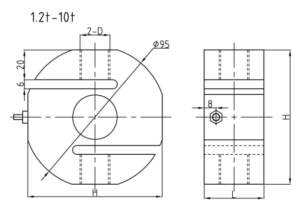 型號(hào) | 量程(kN) | 量程(kg) | D | L | H |