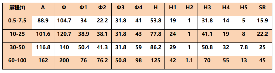 量程:5kN(500kg)、10kN(1t)、20kN(2t)、50kN(5t)、100kN(10t)、200kN(20t)、250kN(25t)、