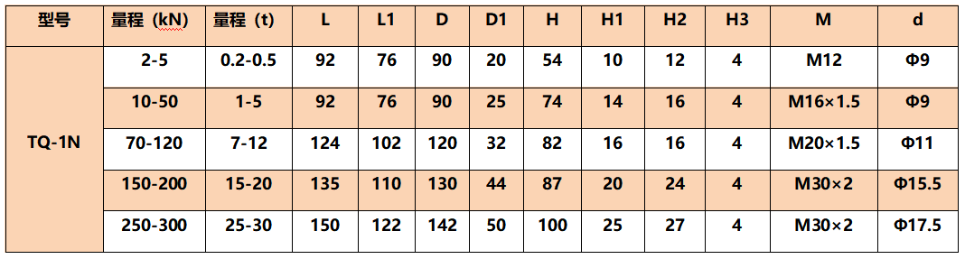 量程:2kN(200kg)、5kN(500kg)、10kN(1t)、20kN(2t)、50 kN(5t)、70 kN(7t)、100 kN(10t)、120 kN(12t)、150 kN(15t)、200 kN(20t) 、250 kN(25t)、300 kN(30t)