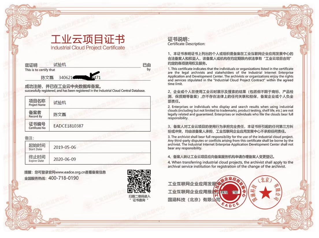 國(guó)家商務(wù)部工業(yè)云項(xiàng)目證書 工業(yè)互聯(lián)網(wǎng)企業(yè)應(yīng)用發(fā)展中心