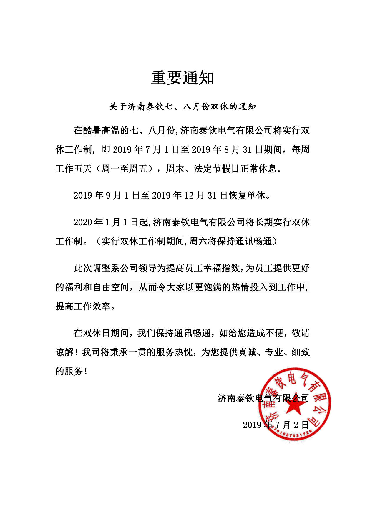 雙休工作制調(diào)整通知
