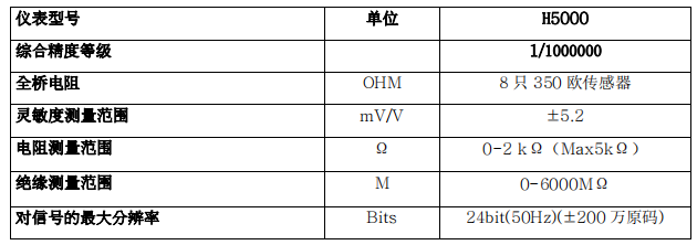 (2) 電阻測(cè)量量程 2kΩ,最大 5kΩ,測(cè)量精度 0.01Ω:靈敏度量程土5.2mV/V,測(cè)量精度 0.00001mV/V。