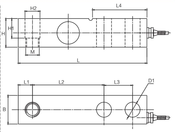 量程 | 量程 | L | L1 | L2 | L3 | L4 | B/H | H1 | H2 | M | D1 | |