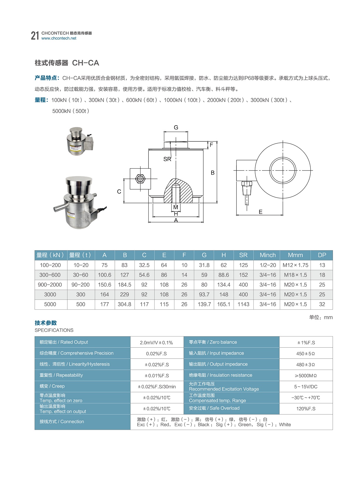 產(chǎn)品特點(diǎn):CH-CA采用優(yōu)質(zhì)合金鋼材質(zhì),為全密封結(jié)構(gòu),采用氬弧焊接,防水、防塵能力達(dá)到P68等級(jí)要求。承載方式為上球頭壓式, 動(dòng)態(tài)反應(yīng)快,防過(guò)載能力強(qiáng),安裝容易,使用方便。適用于標(biāo)準(zhǔn)力值校檢、汽車(chē)衡、料斗秤等。